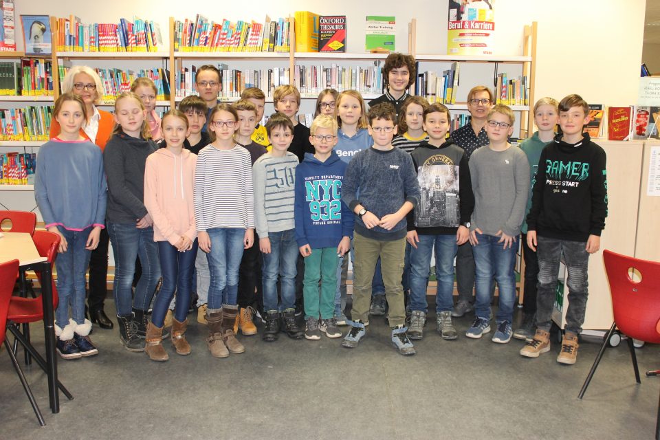 Schulleiterin Ursula Hebel-Zipper ehrte die Teilnehmer und überreichte Urkunden sowie Geschenke während einer Feier in der Bibliothek.