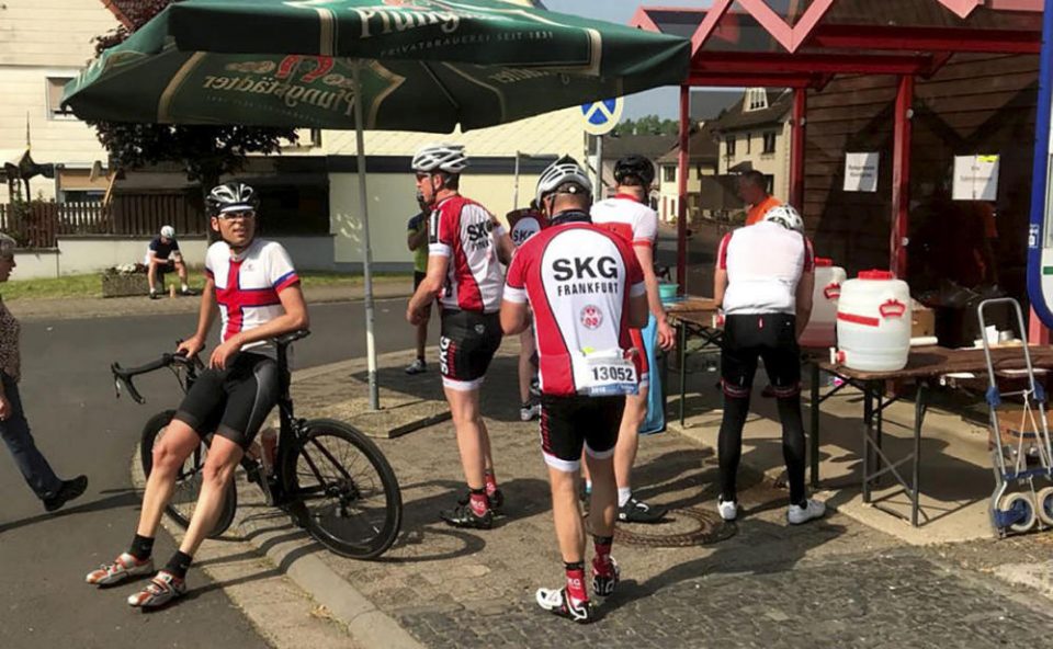 Kurze Pause am Kontrollpunkt: Teilnehmer der Tourenfahrt des Radsportvereins Klein-Karben durch Wetterau und Vogelsberg. Foto: privat