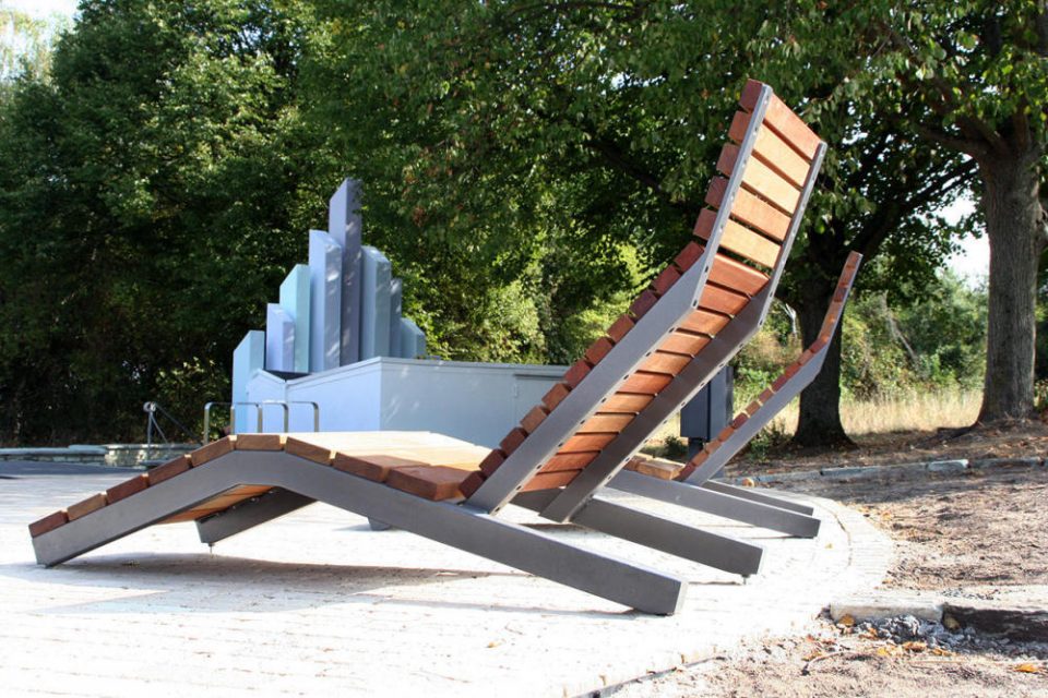 Liegestühle laden zum Entspannen am Ludwigsbrunnen ein. Foto: Pegelow