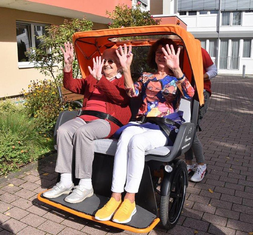 Endlich ist es so weit: Das Grillfest beginnt. Bevor sich Frau Hehle zum Außengelände aufmacht, schaut sie im hauseigenen Café vorbei. Vor Corona konnte man dort lecker Kuchen essen und Kaffee trinken. Nun ist es eine Teststation. Als Treffpunkt eignet es sich trotzdem bestens. Gemeinsam mit zwei Bekannten begibt sie sich nach draußen. Der köstliche Duft von gegrillter Bratwurst empfängt die Damen, während ein Klangteppich aus Musik und Stimmen über der Szenerie liegt. Sie setzen sich an einen hübsch dekorierten Tisch und beobachten einige Besucher, die sich an den Outdoor-Sportgeräten versuchen, während sie sich über den Besuch der Rikschafahrerin unterhalten, die vor Kurzem im Haus war. Ein Lächeln zeichnet sich auf Frau Hehles Lippen ab. Gemeinsam mit ihrer Tochter hatte sie an diesem Tag viel Spaß.