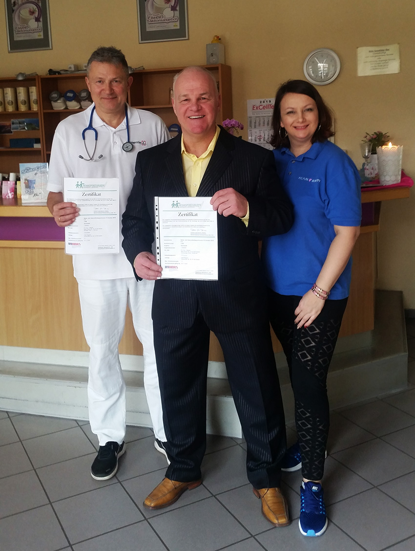Dr. Martin Gräf (links) freut sich mit Olaf Wiggers und Trainerin Renata Streich über die Zertifizierung. Foto: Neumann