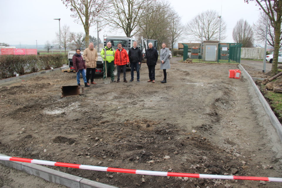 Seit Anfang der Woche wird der rund 380 Quadratmeter große Bereich vor dem Dorftreff neu gepflastert und weitere 380 Quadratmeter werden mit einer wassergebundenen Decke versehen.