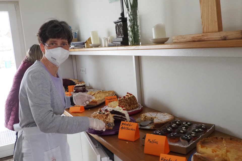 Im Gemeindehaus hatten derweil alle Helfenden viel zu tun. Ingrid Kleefen und Alexandra Hück, Frank Braunroth und Wilma Beck waren zwei der Wünsche-Erfüller-Teams aus den Reihen des »Förderkreises Kirche in Rendel«. Sie stellten die Teller individuell mit den Kuchen- und Tortenwünschen zusammen. »Die Spender entscheiden selbst, wie viel sie für ein Stück geben. Als Richtwert für eine Spende pro Stück haben wir die Preise aus unserem Sommer-Kirchen-Café genannt. Dort ist ein Stück für zwei Euro erhältlich«, sagte Frank Braunroth, Mitglied im Ortsgemeindeausschuss Rendel. Er hat den »Förderkreis Kirche in Rendel« vor einem Jahr mit initiiert. Bereits nach 45 Minuten war das Kuchenbuffet leer gefegt. »Wir sind ausverkauft«, teilten die Helfenden mit. Und Frank Braunroth hatte eine weitere gute Nachricht: »Die Flüchtlingshilfe in Karben kann sich über eine Spende in Höhe von 1140 Euro freuen.« (fau)
