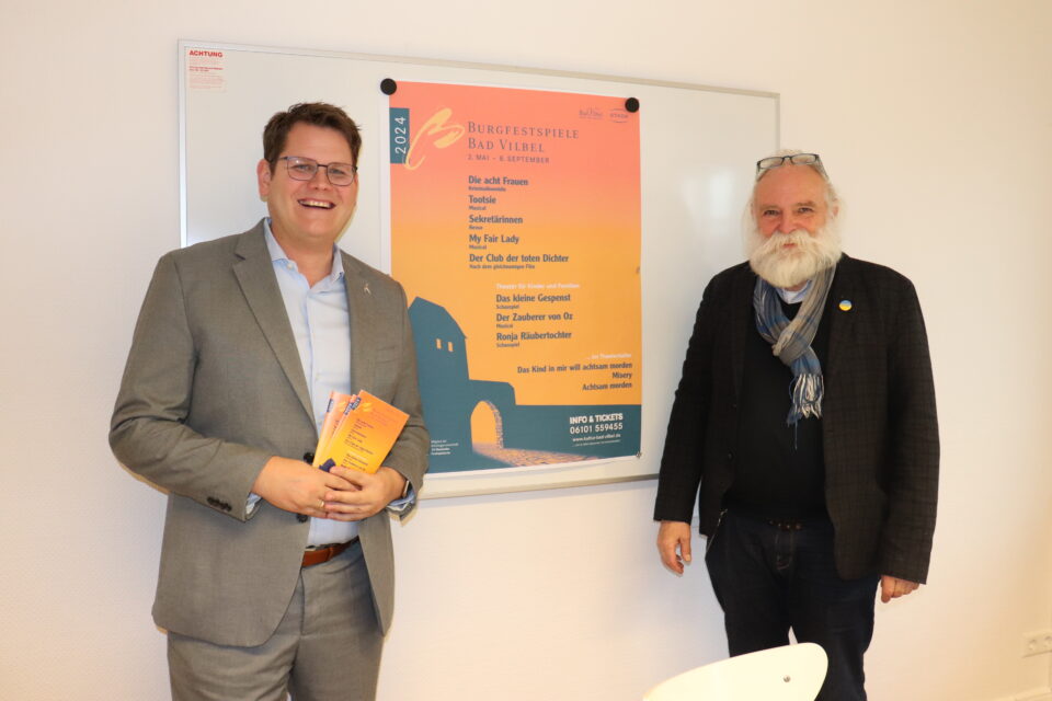 Bad Vilbel. Burgfestspiel-Intendant Claus-Günther Kunzmann und Bürgermeister Sebastian Wysocki haben am Dienstag das Programm für die Saison 2024 vorgestellt. Die Besucher dürfen sich auf insgesamt elf Stücke – und damit zwei mehr als in der vergangenen Saison – freuen. So mancher Kassenschläger findet auch ein zweites Mal den Weg in die Quellenstadt