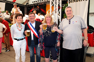 Die Stadtkapelle um Dirigent Christoph Bernius hatte sich vom Fußmarsch des Festzugs schnell erholt, spielte mit flotten Rhythmen („When the saints go marchin’ in“) auf. Dann war es wieder so weit. Bürgermeister Stöhr hielt seine Ansprache, die er, wie er zuvor verriet, noch schnell an den beiden Vortagen reimte.