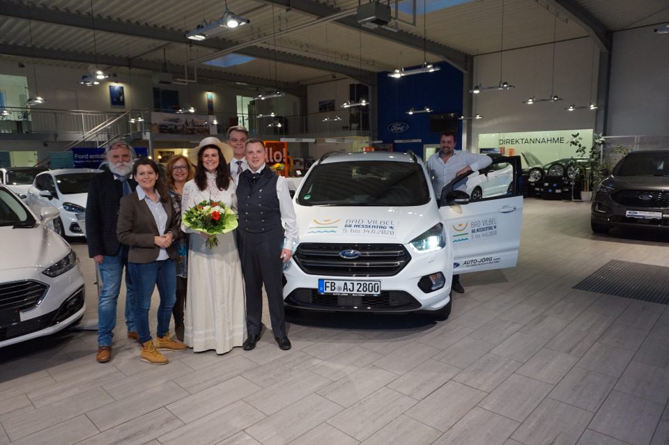 Bad Vilbel. Laurena Röglin und Matthias Kallmeyer, das Hessentagspaar 2020, werden bis zum 5. Juni 2020 viel unterwegs sein. Sie spulen ein enormes Programm ab und reisen quer durch Hessen, um den 60. Hessentag im kommenden Jahr bekannt zu machen. Damit sie diese Reisen auch sicher und bequem antreten können, haben sie nun ein Auto zur Verfügung gestellt bekommen. Das Bad Vilbeler Autohaus »Auto Jörg« übergab dem Hessentagspaar nun einen nagelneuen Ford Kuga.