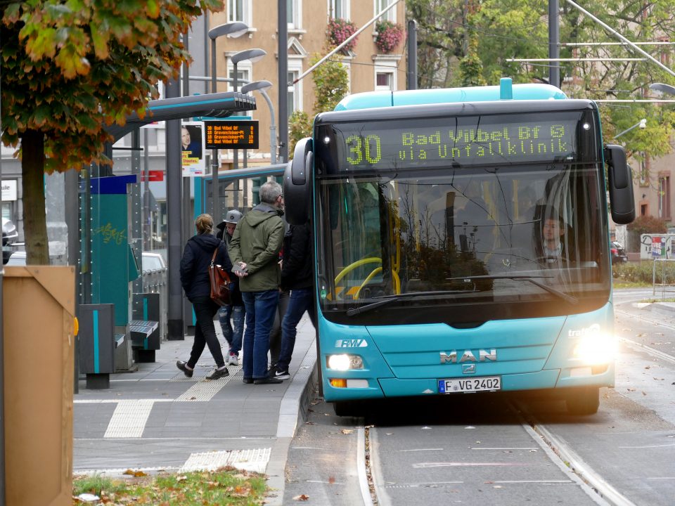 Um das Fahrverbot abzuwenden, setzt die Stadt Frankfurt künftig verstärkt Busse mit Euro-6-Norm oder alternativen Antrieben in der Innenstadt ein. Eine der Linien, die durch die am stärksten vom Stickoxidausstoß belasteten Bereiche rund um Konstablerwache und Börneplatz rollen, ist die 30 von und nach Bad Vilbel.