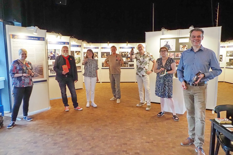 Aus bescheidenen Anfängen beim Festspielstart 1987 entwickelte sich das Theater in der Burg zu »einem Leuchtturm, der weit über die Stadt hinausstrahlt«, wie Bürgermeister Thomas Stöhr (CDU) betonte. Gemeinsam mit Festspiel-Intendant Claus-Günther Kunzmann eröffnete er die Ausstellung, die von Annette Zindel-Strauß, Ruth Schröfel und Isabel Marie Richard konzipiert wurde. Das Trio stöberte in den Archiven, förderte Fotos und Presseberichte zutage, »um Erinnertes und Aufbewahrtes der Öffentlichkeit zugänglich zu machen«. Grafiker Friedemann Kuhl gestaltete die Boards und entwarf das Etikett eines besonderen Getränks.