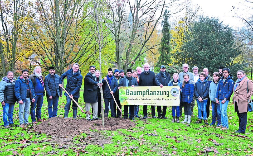 In seiner Antwort betont Bürgermeister Stöhr, dass er immer wieder in der Bad Vilbeler Ahmadiyya-Gemeinde erlebe, » wie fest Sie in Ihrem Glauben stehen, wie verbunden Sie mit Deutschland sind und Ihren großen Wunsch nach Frieden«. Zwei Bäume hat die Ahmadiyya-Gemeinde gestiftet, diese werden nach den Reden in den Boden gesetzt.