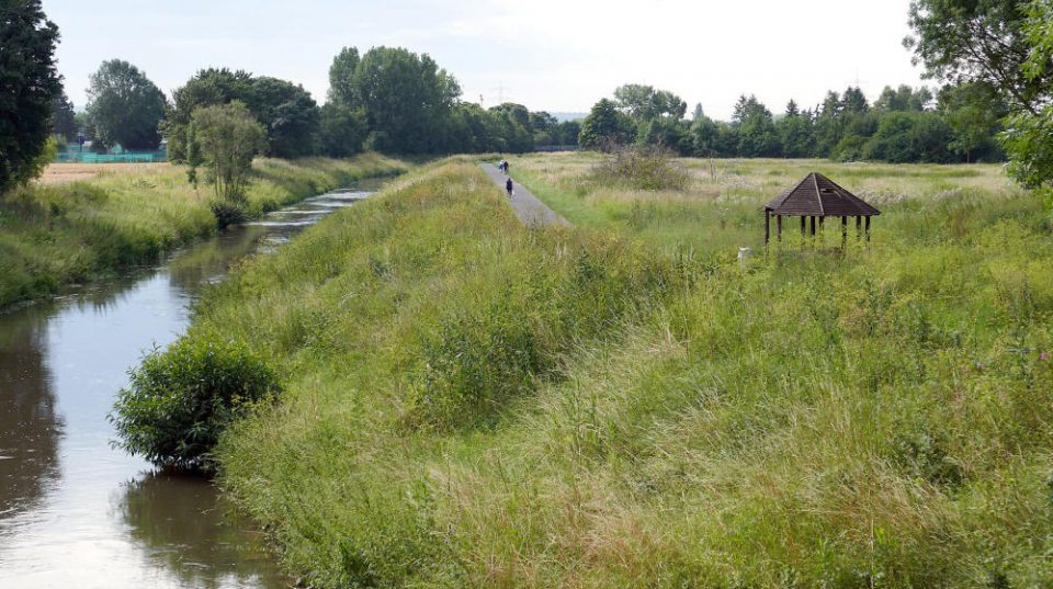 Das Verlegen von Leitungen ist eine wichtige Vorarbeit für die Renaturierung. Denn im Damm neben dem Fluss liegen unter anderem Telekommunikationsstrippen, Elektrokabel sowie eine Wasserleitung der Hassia. Sie alle sollen verlegt werden in einen gemeisamen Leitungskanal direkt neben dem künftigen Niddaradweg. Der wiederum wird auf großen Strecken hinter die Renaturierungsgebiete verlegt. Dadurch wird er auf der vom Fluss weg verlegten, neuen Dammkrone neu aufgebaut. Mit den übrigen Betreibern der Verbindungen sei die Stadt längst einig, betonte Rahn. „Mit der Ovag und Unitymedia ist das völlig unproblematisch.“ Und der Bad Vilbeler Mineralwasserkonzern Hassia wolle eine eigene Trasse bauen.