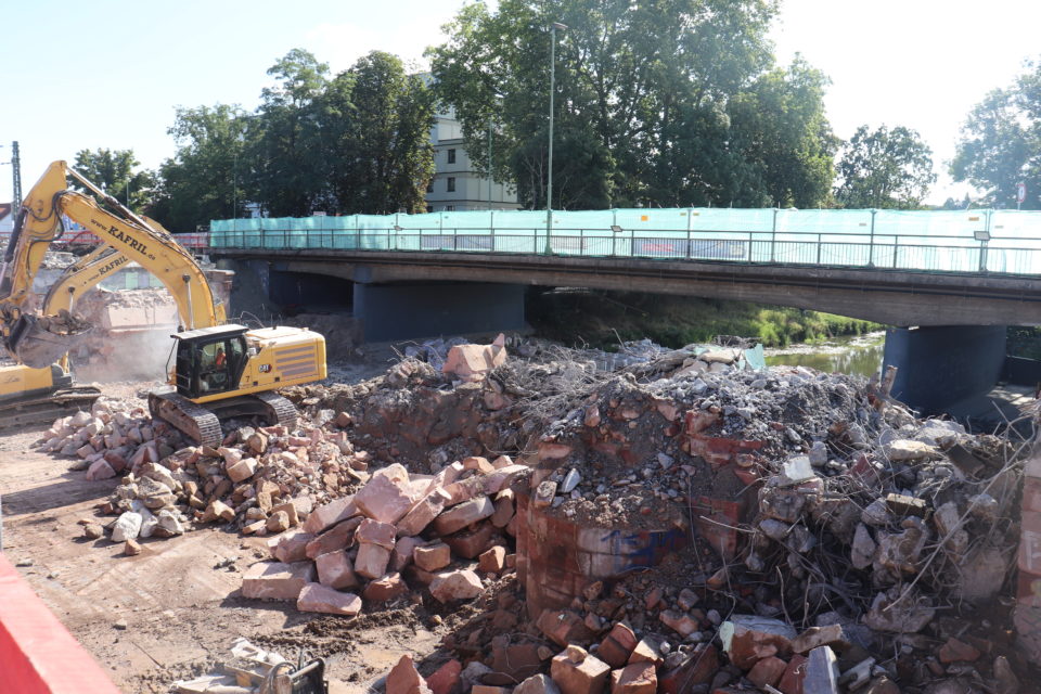 Deshalb muss die alte Sandsteinbrücke durch ein neues Bauwerk ersetzt werden. Die neue Brücke ist in den vergangenen Monaten gebaut worden und steht bereits neben der alten Sandsteinbrücke. Sobald der Abriss fertig ist, wird die neue Brücke Stück für Stück eingeschoben, informiert die Bahn. Das alles passiert während die Strecke für acht Wochen vollgesperrt ist.