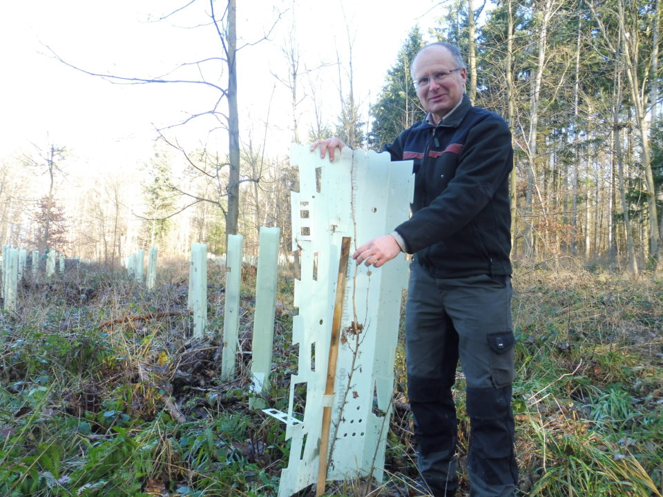 Laien könnten denken, dass gerade die alten Bäume resistenter gegen die Trockenheit wären. Doch weit gefehlt, sagt der Experte. »Es sind gerade die jungen Bäume, die sich noch anpassen können.« So wie die Küstentannen, die rechts des Weges unweit des Trimmpfades den Boden bedecken. Auf dem einen Hektar könnten gut 500 000 Jungpflanzen stehen, rechnet der Revierförster vor. »Dieser große Bestand ist weit und breit einmalig«, freut er sich. Nicht nur dort, auch gut einen Kilometer weiter in Richtung Burg-Gräfenrode hat die Zukunft des Karbener Stadtwaldes schon begonnen. Dort hat der neue Revierförster zweimal 200 Bäume mit Verbissschutz gegen Rehe pflanzen lassen. Feldahorn und Baumhasel würden hier prächtig gedeihen. »Wenn die Bäume mannshoch sind, haben sie es geschafft.«