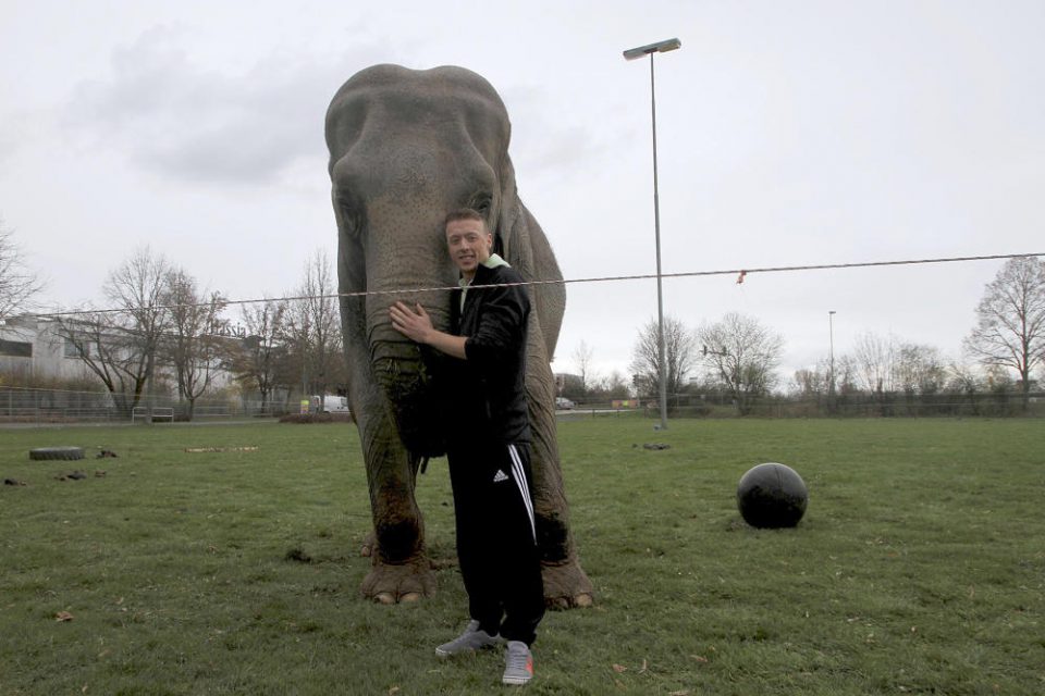 Im März in Bad Vilbel zu Gast gewesen: Kevin van Geet vom Zirkus Belly Wien mit Elefantendame Seila (rund 50 Jahre alt). Damals erhob die Tierschutzorganisation Peta Vorwürfe gegen den Zirkus wegen dessen Tierhaltung. Der Wetteraukreis und die Stadt Bad Vilbel hatten aber keine Kritik. Archivfoto: Kopp