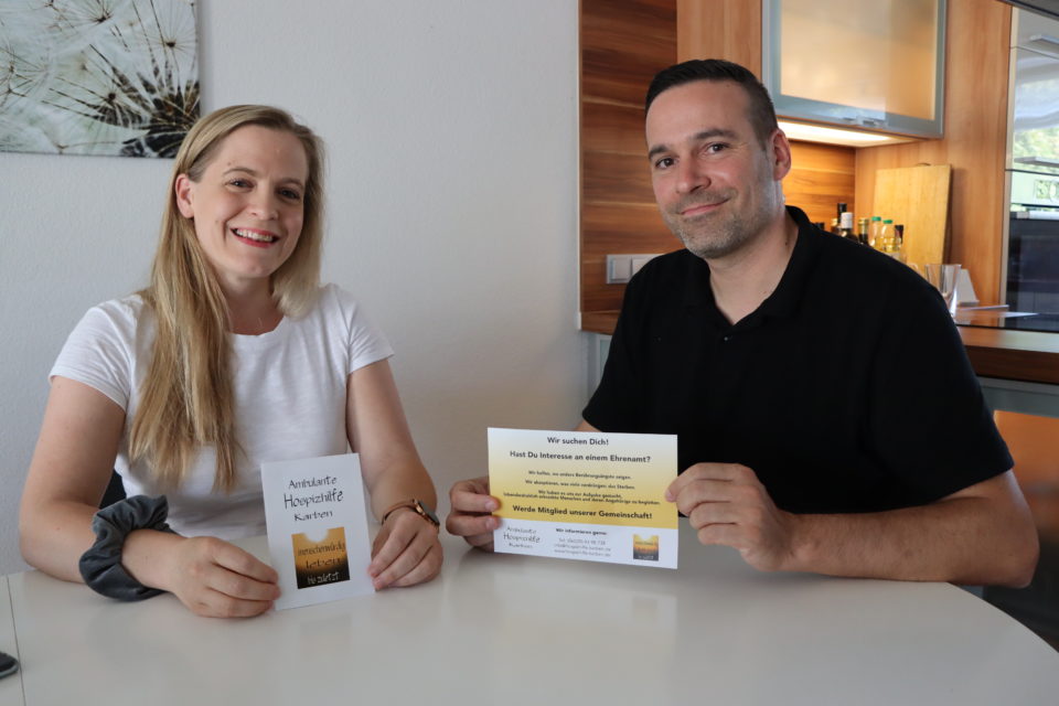 Auch deshalb wollen die Eheleute den Verein und seine Arbeit bekannter machen. Dafür haben sie als eine ihrer ersten Amtshandlungen 2500 Flugblätter drucken lassen und diese in Karbener Haushalten verteilt. Nicht zuletzt übernehmen sie das langfristige Ziel ihrer Vorgänger, die Hospizbewegung auf breitere Beine zu stellen.