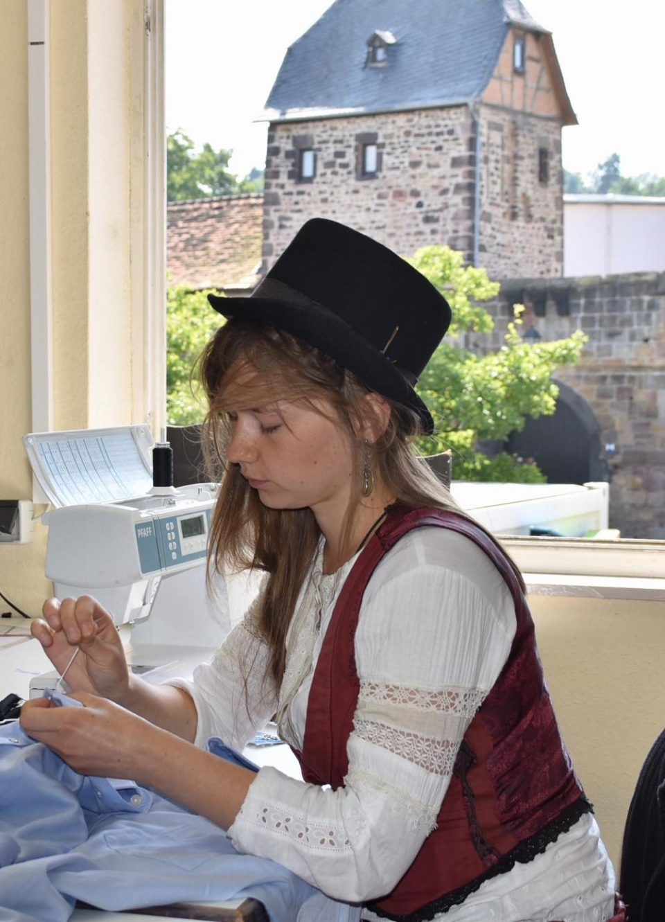Seit mehr als drei Jahre ist die Maßschneiderin Chadidscha auf der Walz. Ihren Nachnamen hat sie für diese Zeit abgelegt und nennt sich fremde, freireisende Schneiderin. Die 25-Jährige ist ohne Mobiltelefon und Computer unterwegs. Für drei Monate hatte sie Arbeit in der Schneiderei der Burgfestspiele gefunden. Es ist die maximale Aufenthaltsdauer, denn „sobald die Hunde nicht mehr bellen und der Postbote einen mit Namen begrüßt, ist es Zeit weiterzuziehen“, sagt sie.