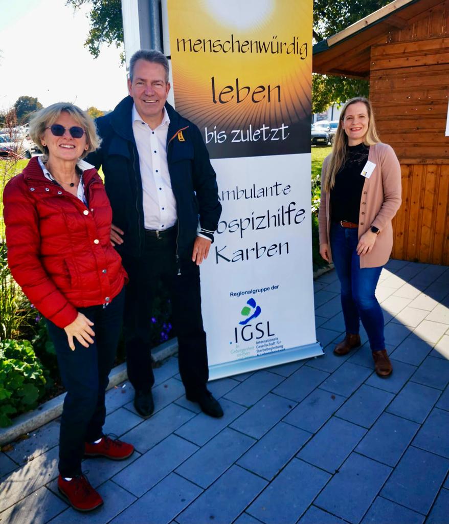 Auch Denise Schädlich vom SAPV Team Wetterau war am Vormittag zur Unterstützung gekommen. Ein besonderer Dank geht auch an die Stadt Karben mit Bürgermeister Guido Rahn, die zu diesem Anlass beide Holzhütten in der Neuen Mitte als Informationsdomizil kostenfrei zur Verfügung stellte.