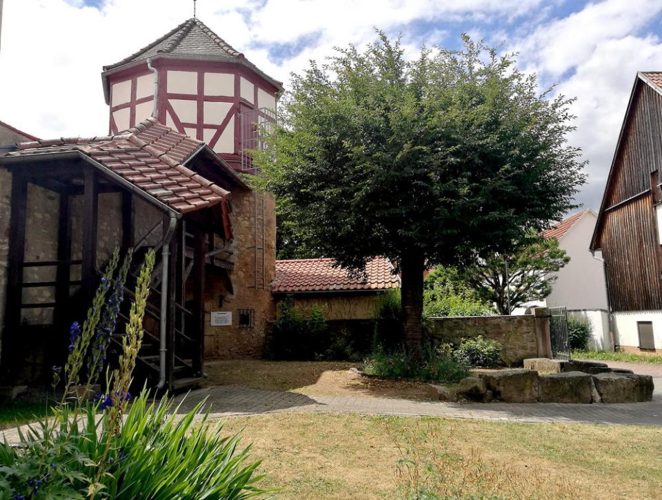 Es wurde das Fachwerk komplett entkernt, die falschen Ytong-Steine wurden durch Lehmsteine ersetzt, etliche Querbalken wurden erneuert, die Dachbalken neu gestrichen. Der Turm verfügt über einen komplett neuen Boden, den Alex Fröhlich aus Burg-Gräfenrode in viel Eigenleistung selbst eingebaut habe, wie Lauster-Ulrich berichtet. „Er hat hier im Turm viele Stunden zugebracht“, lobt sie das tatkräftige Engagement. Der Turm hat auch eine komplett neue Elektrik erhalten, im ersten Stock eine Toilette und einen Lagerraum. Das Prunkstück aber ist der Raum im zweiten Stock, zu dem eine enge Wendeltreppe hochführt. Hier wurde ein Holzboden eingebaut, alle Balken entweder erneuert oder gestrichen, ebenso haben die Fenster einen neuen Anstrich erhalten.