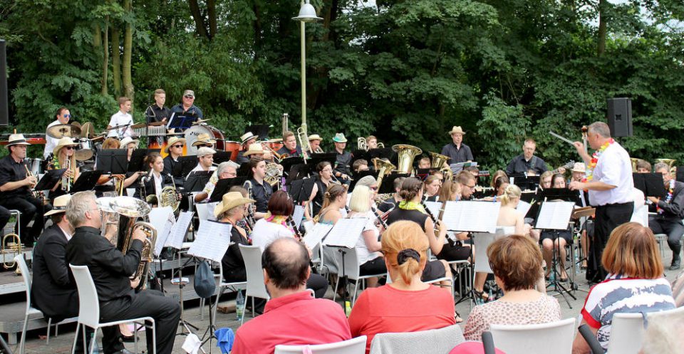 Einige der Musiker hatten sich Strohhüte, Sonnenbrillen und Hawaii-Ketten angezogen, manche trugen nun sogar ein Hawaii-Hemd. Die Gäste waren begeistert. „Ich komme jedes Jahr und normalerweise spielt auch mein Sohn mit, der heute nur leider durch einen Konfirmandenausflug verhindert ist. Aber das heutige Programm ist wirklich toll“, urteilte die begeisterte Zuhörerin Sandra Pflug.