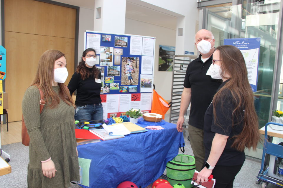 Bad Vilbel. Beim Bewerbertag für Erzieherinnen und Erzieher haben am Samstag erneut die insgesamt elf Kindertagesstätten (Kitas) in Bad Vilbel (Kernstadt und alle Ortsteile) ihre Konzepte im Eingangsbereich des Rathauses präsentiert. Nicht nur in der Quellenstadt fehlen Erzieherinnen und Erzieher, sondern auch die Nachbarkommunen haben Bedarf. Deshalb müssen sich die Städte etwas einfallen lassen, um zumindest erst einmal ins Gespräch mit möglichen Interessenten zu kommen.