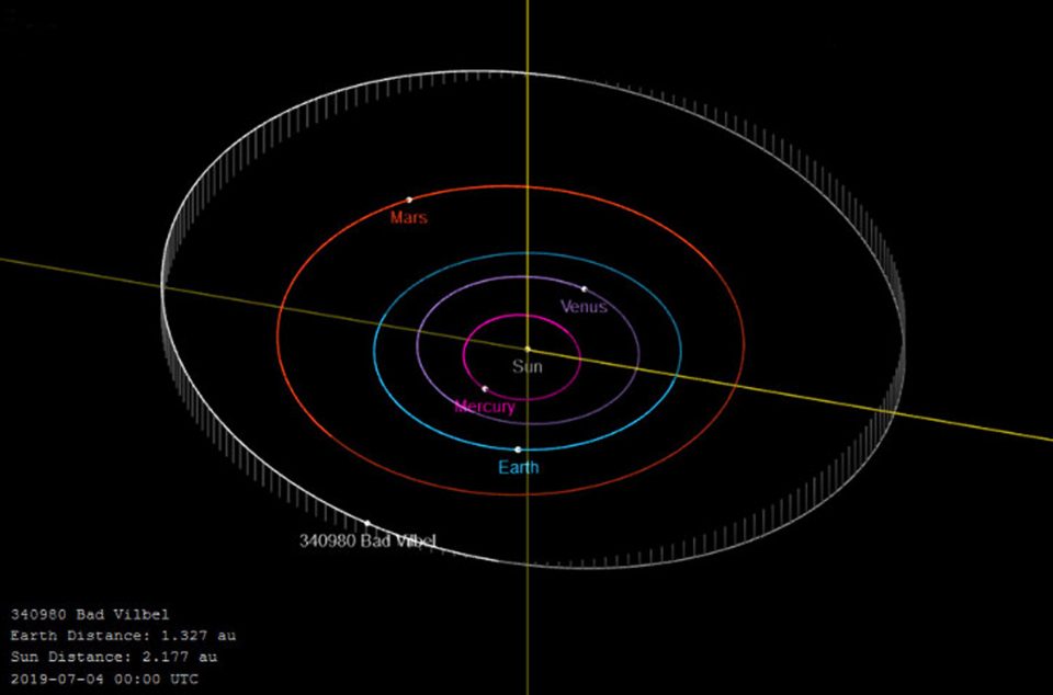 Viel ist über den Asteroiden Bad Vilbel nicht bekannt, nur eines ist klar: Leben ist »auf Bad Vilbel« keines möglich. Bad Vilbel muss ein unwirklicher Ort sein. 1,4 Astronomische Einheiten von der Erde entfernt, schwirrt der Kleinplanet im Asteroiden Gürtel umher. Eine Astronomische Einheit entspricht der Entfernung zwischen Sonne und Erde. Nur ein bis zwei Kilometer misst Bad Vilbel im Durchmesser, viel Platz ist dort also nicht. Dafür Zeit: So dauert ein Jahr auf Bad Vilbel beachtliche 1410 Tage. Doch wie der Asteroid Bad Vilbel genau aussieht, und aus welchem Gestein er ist, das wird wohl für immer unergründet bleiben. Ob er sich um eine Rotationsachse dreht, könnte aber mit etwas Aufwand noch herausgefunden werden, der Rest bleibt Geheimnis des Weltraums.