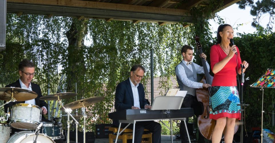 Das »Michele Alberti Trio« mit Sängerin Inga Saalmann gastiert am Samstag in Bad Vilbel am Nidda-Ufer. Foto: Privat