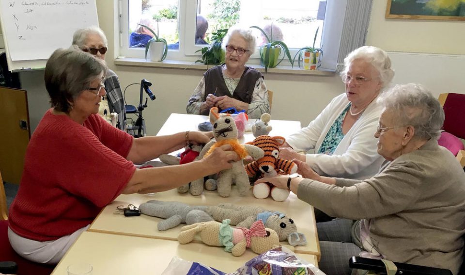 Auch ist den Bewohnerinnen freigestellt, ob sie lediglich ein Stündchen pro Woche in der gemeinsamen Zeit an den Projekten arbeiten oder die angefangenen Werke mit aufs Zimmer nehmen. „Ich stricke eigentlich rund um die Uhr, beim Fernsehen, im Garten, in unserer gemeinsamen Stunde“, erzählt eine Teilnehmerin.