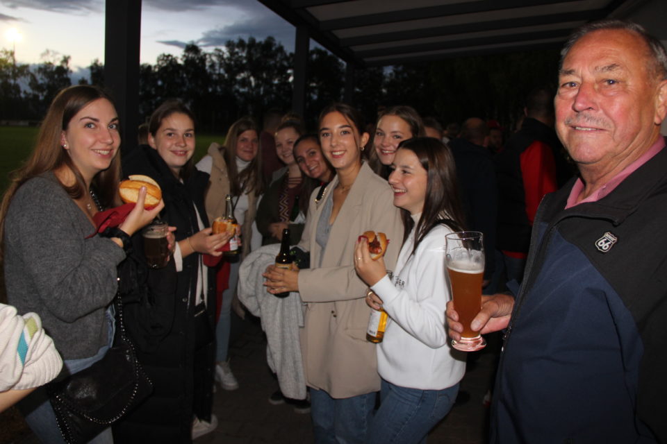 Und dass dies nicht nur leere Worte sind, zeigte sich wenig später, als der Bürgermeister mitten zwischen Anhängern des Vereins sowie vielen Zuschauern das Fußballspiel verfolgte. Dem Spiel schloss sich sodann die vor allem unter Jugendlichen beliebte Hütchen-Party an, die bis tief in die Nacht andauerte. Nachdem für Samstag – es sollte Dauerregen geben – alle Veranstaltungen vorsorglich abgesagt worden waren, startete der Sonntag aber wieder, wie es geplant war – nämlich mit einem Jubiläumsfrühschoppen im Festzelt.