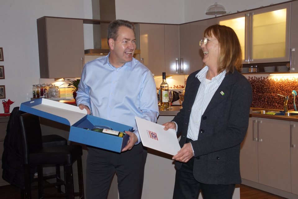 Bürgermeister Guido Rahn überreicht Ulrike Loos den Landesehrenbrief. Foto: Fauerbach