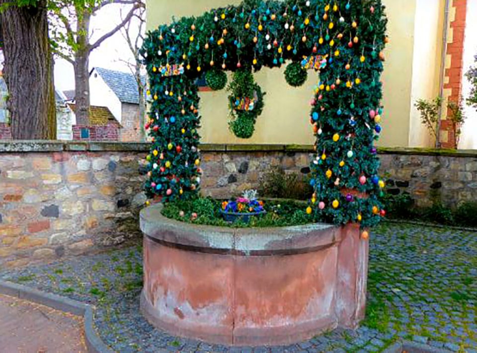 Karben. Der historische Brunnen in Okarben zeigt sich wieder in buntem Gewand. Seit gut einem Jahrzehnt pflegt Helga Rust und ihr Team die Tradition des Osterbrunnen-Schmückens. So auch in diesem Jahr wieder. Etwa drei Wochen vor Ostern werden die Kartons mit den künstlichen Grüngirlanden, den bunten Ostereiern und der Dekoration hervorgeholt, und nach zwei Stunden Arbeit trägt der Brunnen wieder österliche Pracht. »Ein neues Team übernimmt im kommenden Jahr das Schmücken des Brunnens«, kündigt die Okärberin an und freut sich: »Es geht in gute Hände über, wir wünschen dem neuen Team viel Freude und Spaß bei dieser Tätigkeit!« (cwi)