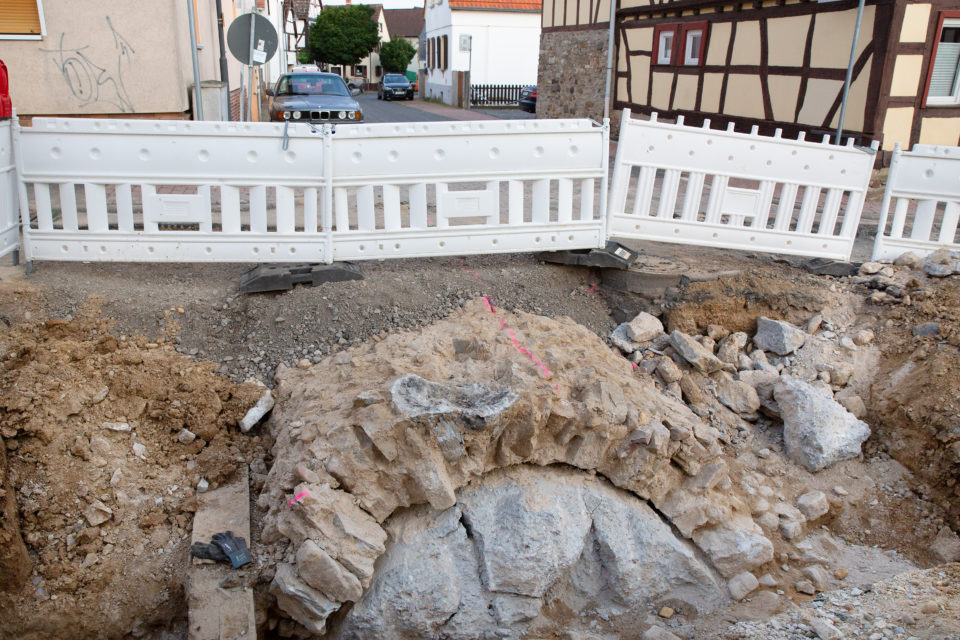 Karben. Es sind spannende Tage für Geschichtsinteressierte in Petterweil. Bauarbeiter haben unter der Straßenoberfläche der Alten Heerstraße eine nicht ganz unerwartete Entdeckung gemacht: Etwa 10 bis 20 Zentimeter tief befindet sich dort ein quaderförmiger Mauerblock im Boden. Nicht ohne Grund ist er genau an dieser Stelle.