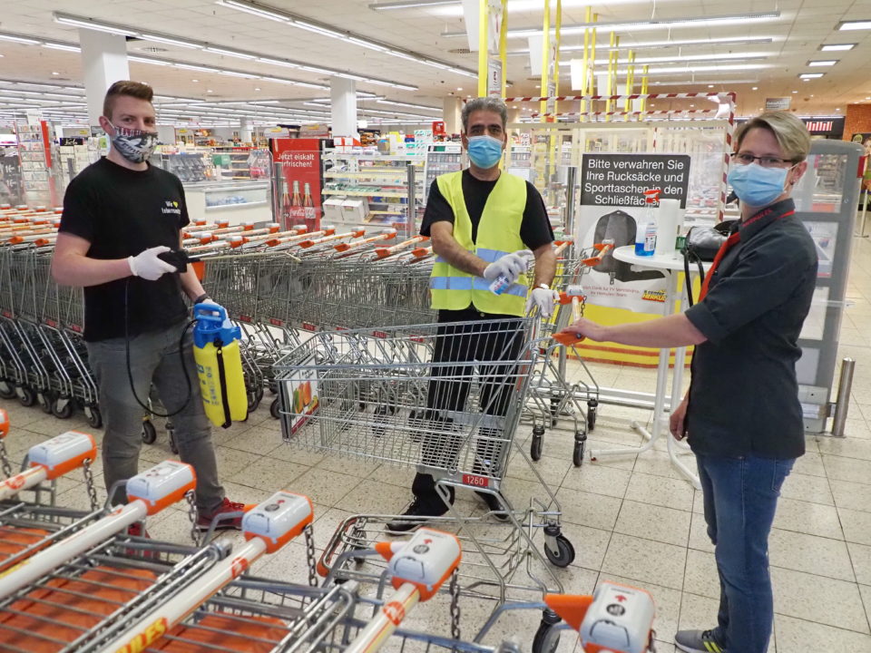 Auch die Oberflächen nehme das Unternehmen sehr ernst. Alle Kassenkräfte hätten Desinfektionstücher und -spray am Arbeitsplatz, um diesen Bereich putzen zu können. »Wir reinigen sämtliche Flächen, mit denen Kunden in Kontakt kommen, mindestens arbeitstäglich, in vielen Fällen zweistündlich. Und die Wagen möglichst nach jeder Nutzung, mindestens aber alle zwei Stunden.« Für die Kunden stehe stets ein Spender bereit, um die Hände und gegebenenfalls den Einkaufswagen zu desinfizieren. »Immer mehr Leute haben übrigens Desinfektionstücher dabei, um die Wagen selbst zu säubern. Das finden wir klasse.«