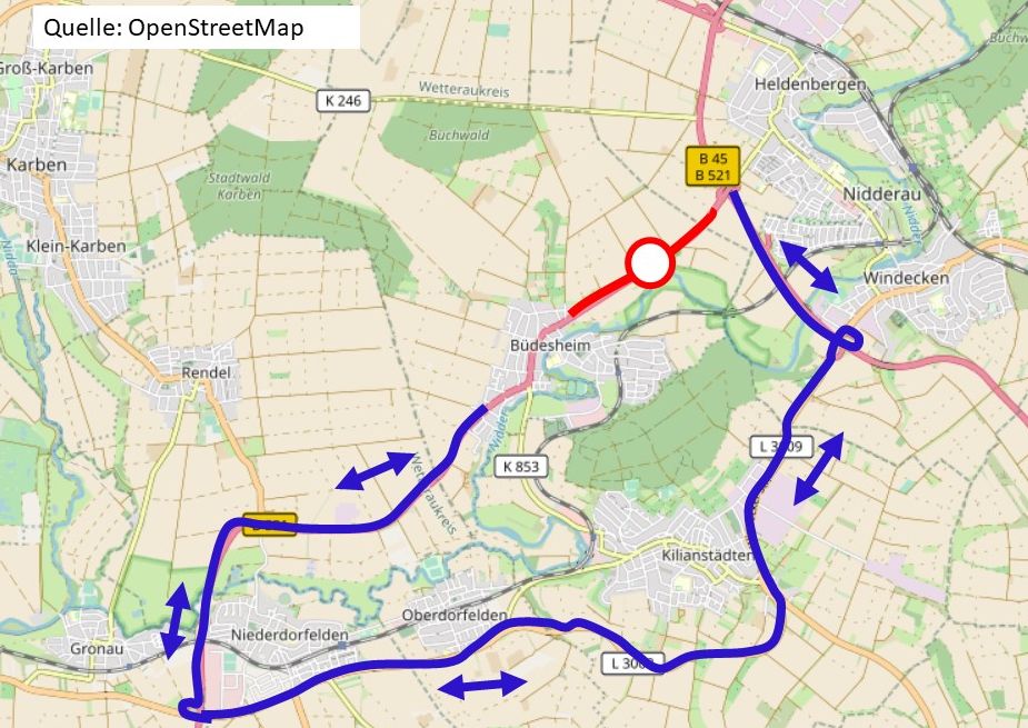 Sperrung der B 521 zwischen Schöneck/Büdesheim und Nidderau/Heldenbergen