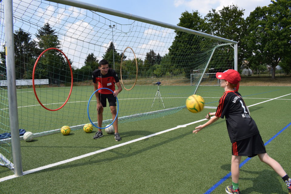 Für die ganz Kleinen waren die vorbereiteten Übungen allerdings gar nicht so leicht zu bewältigen. Einerseits sollte ein Ball durch unterschiedlich große Ringe gefaustet werden, andererseits ging es um pure Schlagkraft. Wer wollte, konnte bei der Gelegenheit von Simeon Wittich und Thomas Gold noch mehr über die Sportart Faustball erfahren. »Faustball sieht man leider nur sehr selten im Fernsehen, obwohl Deutschland in dieser Sportart immer wieder große Erfolge feiert«, sagte Gold. »Erst kürzlich hat die Nationalmannschaft wieder den Worldcup gewonnen.«