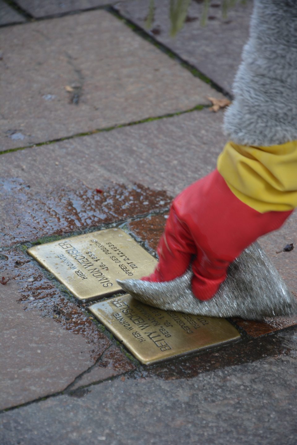 Zu sechst macht sich die kleine Gruppe am Samstagmorgen auf den Weg durch Bad Vilbel. 25 sogenannte Gedenk-Stolpersteine gibt es in der Kernstadt. »Die Steine haben einen Putz aber auch wirklich nötig«, meint einer der Teilnehmer, während er mit aller Kraft einen der metallenen Steine bearbeitet. Die dunkle Schmutzschicht löst sich nur schwer, doch mehr und mehr ist der Name wieder zu erkennen. »Das war doch schonmal wichtig«, findet Regina Spohn-Steffan.
