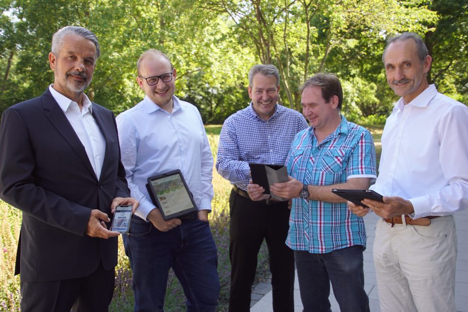 Ziel ist es, den Bürgern einfach und kostenlos einen Internet-Zugang über WLAN zu bieten. Über die Verfügbarkeit des freien öffentlichen WLANs in Karben informierten Bürgermeister Guido Rahn (CDU), Magistratsdirektor Hans-Jürgen Schenk, Stadtrat Sebastian Wollny und der städtische IT-Administrator Thomas Groth gemeinsam mit Betreiber Walter Innerebner.