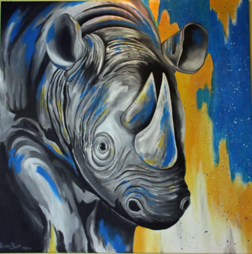 20 Werke in unterschiedlichen Formaten hat Barth ausgewählt, ein halbes Dutzend Bilder eigens für die Ausstellung gemalt, darunter ein Rad schlagender Pfau und ein plakatives Nashorn im Großformat.