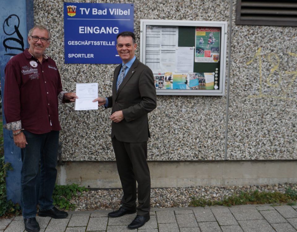 »Der TV Bad Vilbel ist ein fester Bestandteil des Bad Vilbeler Vereinslebens, mehr noch, aufgrund seiner langen Tradition gehört er zu unserer Stadt wie die Quellen und die Festspiele. Daher haben wir uns als Stadt gern mit einem Zuschuss für die Sanierung der Turnhalle in der Huizener Straße beteiligt«, erklärte Bürgermeister Stöhr am Rande der Bescheidübergabe. Der TV Bad Vilbel saniert derzeit Umkleiden und Funktionsräume im Kellergeschoss, um die Turnhalle für die nächste Generation von Sportlerinnen und Sportlern fit zu machen. Daran beteiligt sich die Stadt, wie bei solchen von Vereinen getragenen Investitionen üblich, mit einem Drittel der Gesamtkosten.