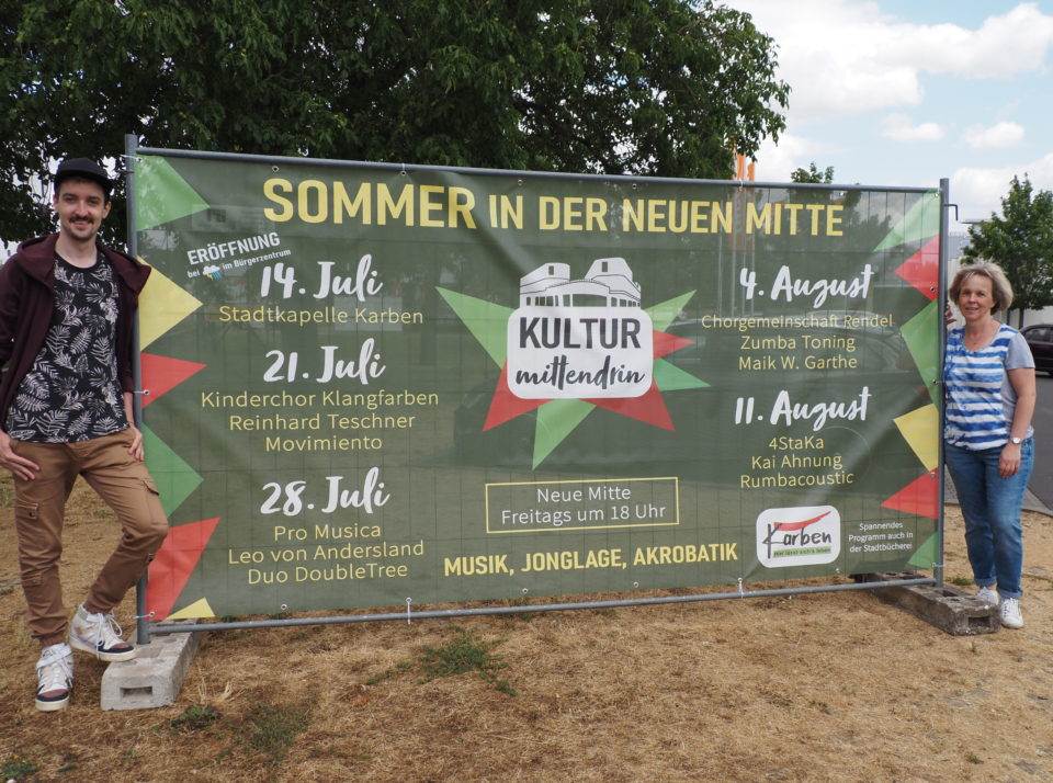 Die ehrenamtliche Kulturdezernentin Sabine Helwig sagt: »Gemütlich mit Freunden und Familie in der Neuen Mitte sitzen, bei bestem Wetter entspannt ein Glas Wein trinken, den Sommerabend genießen und der Musik der Künstlerinnen und Künstler lauschen: Das ist Kultur Mittendrin.«