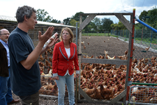 Ökologische Landwirtschaft gehe auf dem Dotti weit über den Getreideanbau hinaus. Auch das Tierwohl, das bei vielen Betrieben auf der Strecke bleibe, genieße beim Dottenfelderhof hohe Priorität. „Wir als Landesregierung haben uns ja klar gegen genmanipulierte Produkte gestellt. Deshalb ist es gut zu sehen, wie Bio-Erzeugnisse auch in größerem Maßstab produziert werden können“, fährt die Ministerin in ihrer Lobesrede fort.
