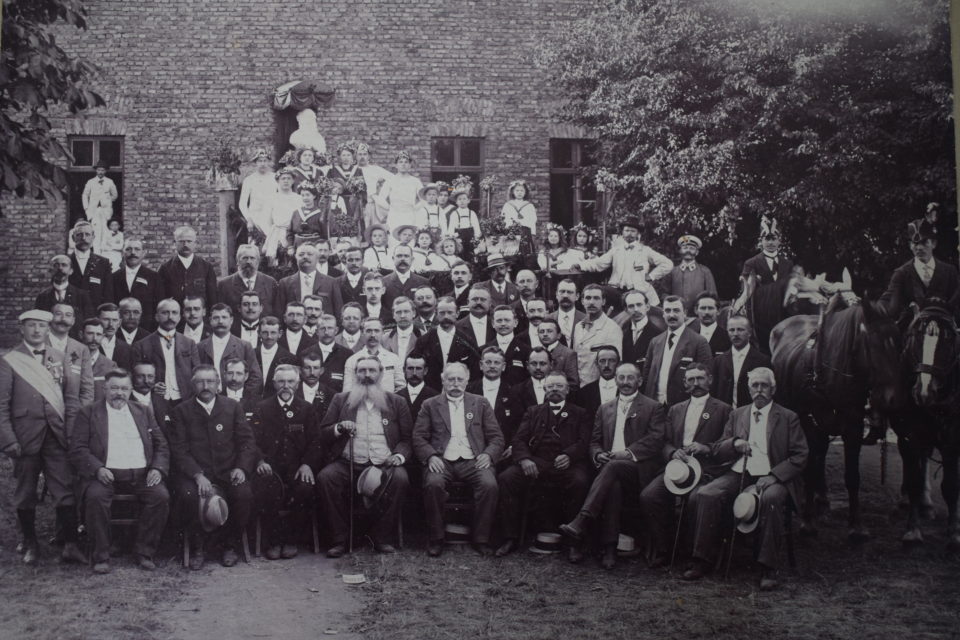 Ein Vereinsfoto aus der Kaiserzeit. Ort und Datum sind unbekannt. Vermutlich entstand es vor oder nach einem Festumzug. Foto: Archiv TV Bad Vilbel