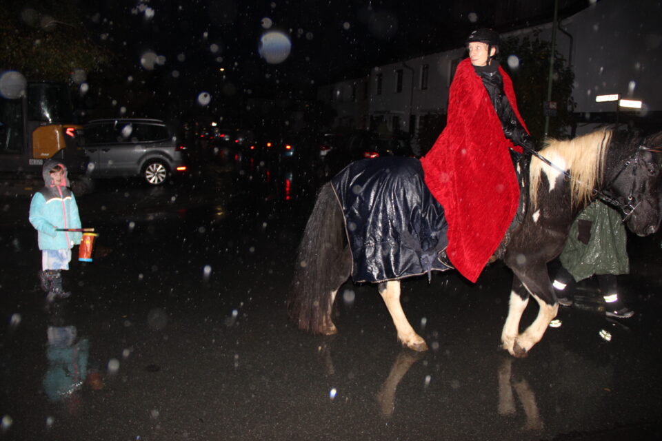 In Petterweil waren dies am vergangenen Samstag rund 100 Kindern mit ihren Eltern, die nach dem Martinsspiel in der St.-Bardo-Kirche sich hinter dem – in diesem Jahr weiblichen – St.Martin hoch zu Ross einreihten und mit so bekannten Liedern wie »Laterne, Laterne …« oder »Ich geh mit meiner Laterne…« singend durch das Dorf zogen.