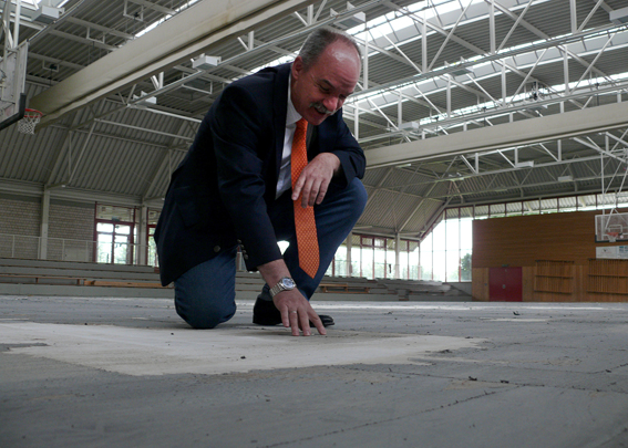 Erst halb so alt, aber ebenfalls sanierungsbedürftig ist der Boden der Großsporthalle: Den haben Arbeiter komplett entfernt, in Kürze wird ein neuer Sportboden eingebaut. Erst ab Oktober kann er genutzt werden. Wichtig ist der neue Boden auch für die Volleyballerinnen von der TG Groß-Karben, da er nun dem Spielniveau der Regionalliga gerecht wird, sagt Wild. Doch nicht nur mit Ende der Arbeiten dürfte in nächster Zeit mehr Ruhe in die Schule kommen.