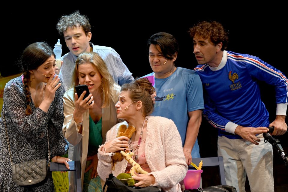 Turbulente und flott gespielte Szenen sind das. Die Szenenwechsel sind beschwingt choreografiert. Kein starres Bühnenbild, sondern Bewegung und Dialog bestimmen das Geschehen. Ob es sich in Paris oder der Provinz abspielt, sieht man an der Kleidung. Ein Tisch und ein paar Stühle, welche die Schauspieler selber arrangieren, reichen, um die Familie auf der Bühne zusammenzubringen. Der Akkordeonspieler (Andreas Krämer) liefert die passende musikalische Untermalung. Die jungen Männer agieren mit Leidenschaft und Witz.