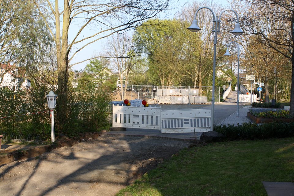 Kein Durchgang mehr: Der Verbindungsweg von der Nidda-Brücke Richtung Ramonville Straße ist aufgerissen und wird erneuert. Foto: Wieberneit