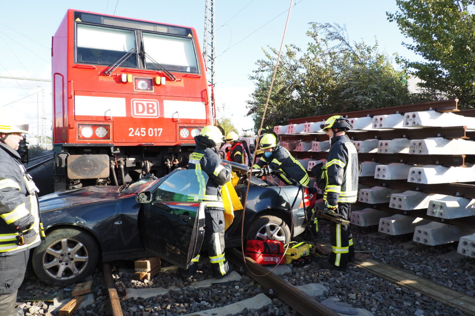 Bad Vilbel. Knifflige Übungsaufgabe für die Bad Vilbeler Feuerwehr und die Helfer des DRK: Angenommen wurde, dass das Stockheimer Lieschen mit zwei Autos kollidierte. Am Nordbahnhof ist am Samstag zu beobachten, wie die Helfer Hand in Hand arbeiten.
