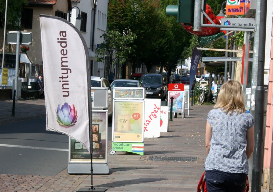 Noch sei der Gewerbering in Gesprächen mit der Stadt, wie sich das Problem regeln lasse, sagt Delazer. Sie finde jedoch, ein Aufsteller pro Geschäft müsse reichen. Wenn nun überlegt werde, für diese eine Gebühr zu erheben, müsse diese wenigstens nach der Größe der Geschäfte gestaffelt werden. Sie schräg zu stellen, um mehr Platz zu schaffen, sei aber keine Alternative, denn die Plakate wirkten „vor allem in Fahrtrichtung“. Doch Delazer weiß auch, dass die Plakate umso weniger wahrgenommen werden, je massiver sie auftreten.