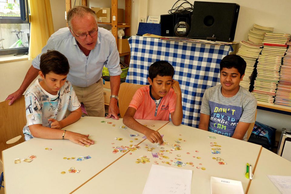 Wilfried Mohn und sein ebenfalls pensionierter Kollege Joachim Astemer unterrichten ehrenamtlich Kinder, die ohne deutsche Sprachkenntnisse in die Klassen fünf und sechs eingeschult werden. Ab Klasse sieben unterrichten die ehemalige Lehrerinnen Elvira Chtouris-Vogel und Christine Gortner Kinder mit mangelnden Deutschkenntnissen in Zweiergruppen.