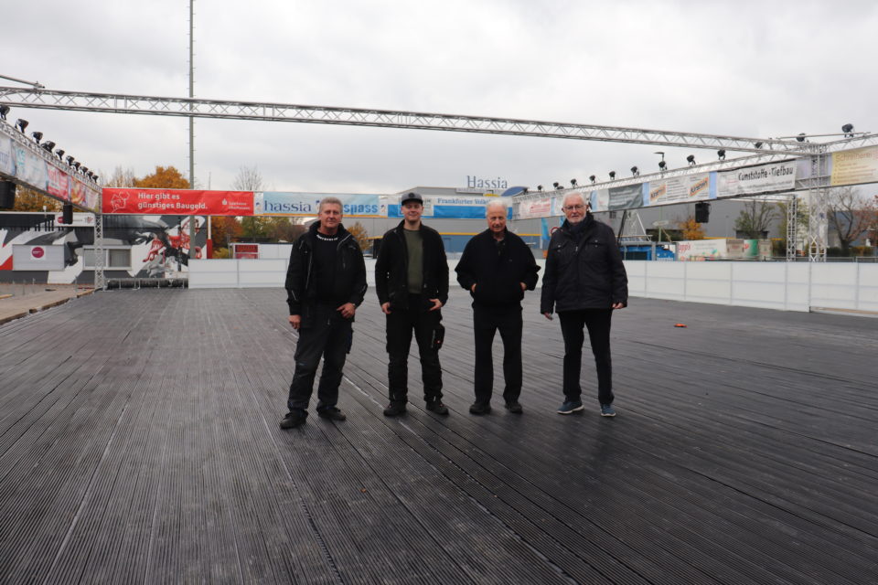 Und dafür laufen die Vorbereitungen auf Hochtouren. Betreiber und Schausteller Josef Weinheimer und seine ganze Familie sind schwer beschäftigt. Vom 19-jährigen Sohn Jason bis zum 81-jährigen Vater Harry helfen alle mit. »Wir sind froh, dass wir wieder was zu tun haben«, sagt Josef Weinheimer. »Für uns als Schaustellerfamilie waren das harte eineinhalb Jahre. Jetzt geht es wieder los.« Sein Blick schwankt auf die baldige Eisfläche. »Neun Mitarbeiter bauen gerade die Banden auf. Wir arbeiten mit Hochdruck und viel Personal.«